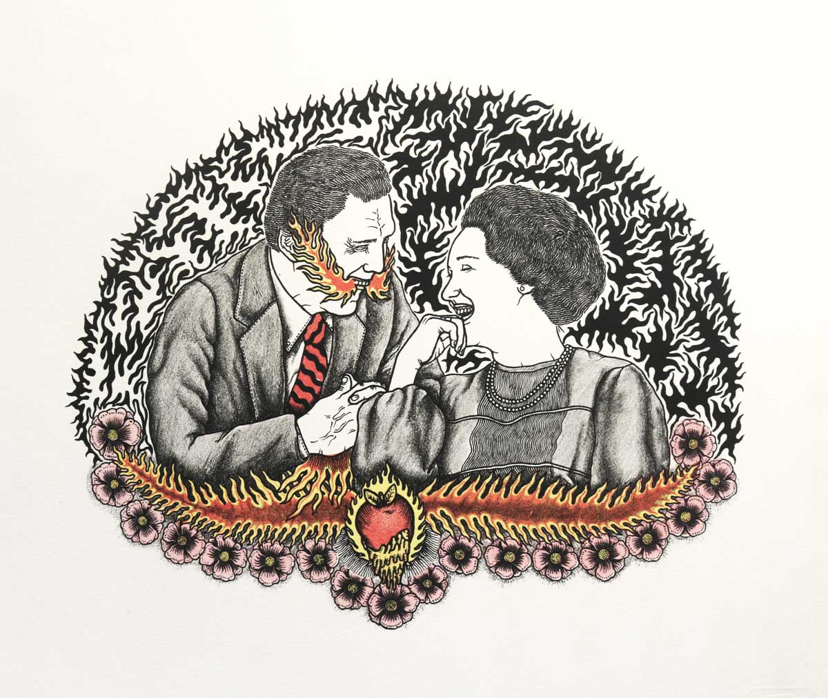 Humberto Espino es un artista visual y tatuador. Estudió la carrera de Artes Plásticas en la Universidad Veracruzana y se especializó en técnicas de gráfica tradicional, adquiriendo gran parte de sus conocimientos gracias a la formación con Daniel Barraza, uno de los impresores más reconocidos del país. También aprendió la técnica de serigrafía junto al artista Luis Enrique Gutiérrez Ortiz Monasterio en Zoncuantla, Veracruz. Ha trabajado en talleres gráficos como La Ceiba Gráfica y La Huella Gráfica en la Ciudad de Oaxaca, y actualmente dirige el Taller de Serigrafía Ecológica “El Obscuro 6r6fic6”, que él mismo fundó en Xalapa, Veracruz.