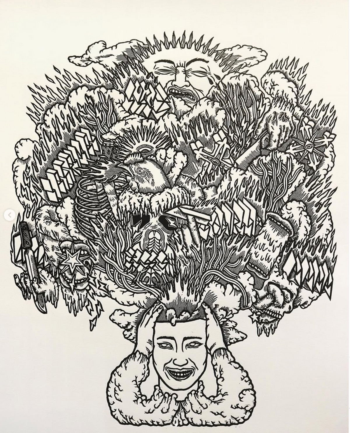 Las principales influencias en su producción artística provienen del grabado medieval de Lucas Cranach el Viejo, la obra del artista japonés Utanawa Kuniyoshi y los trabajos de Durero. En su práctica visual busca transgredir el orden habitual de los símbolos universales, abordando temas complejos como religión, magia, ocultismo, astrología, psicología transpersonal y la evolución/involución de las sociedades para explorar la experiencia humana. A través de intersecciones entre arquetipos, símbolos y referencias aleatorias, Humberto genera códigos visuales sugestivos que desafían los límites conscientes y subconscientes de la realidad. Su obra se inscribe dentro del horror vacui, como un artista interesado en indagar lo que históricamente ha sido reprimido.